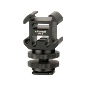 Triple zapata fría con acople de zapata Ulanzi PT-3S. Fabricado en aleación de aluminio, durable y ligero. Gracias a su zapata fría inferior, puede ser montado sobre cámaras de fotos, cajas de cámara, pedestales de iluminación, trípodes de fotografía y video, etc. Incluye: Zapata. Empaque original.