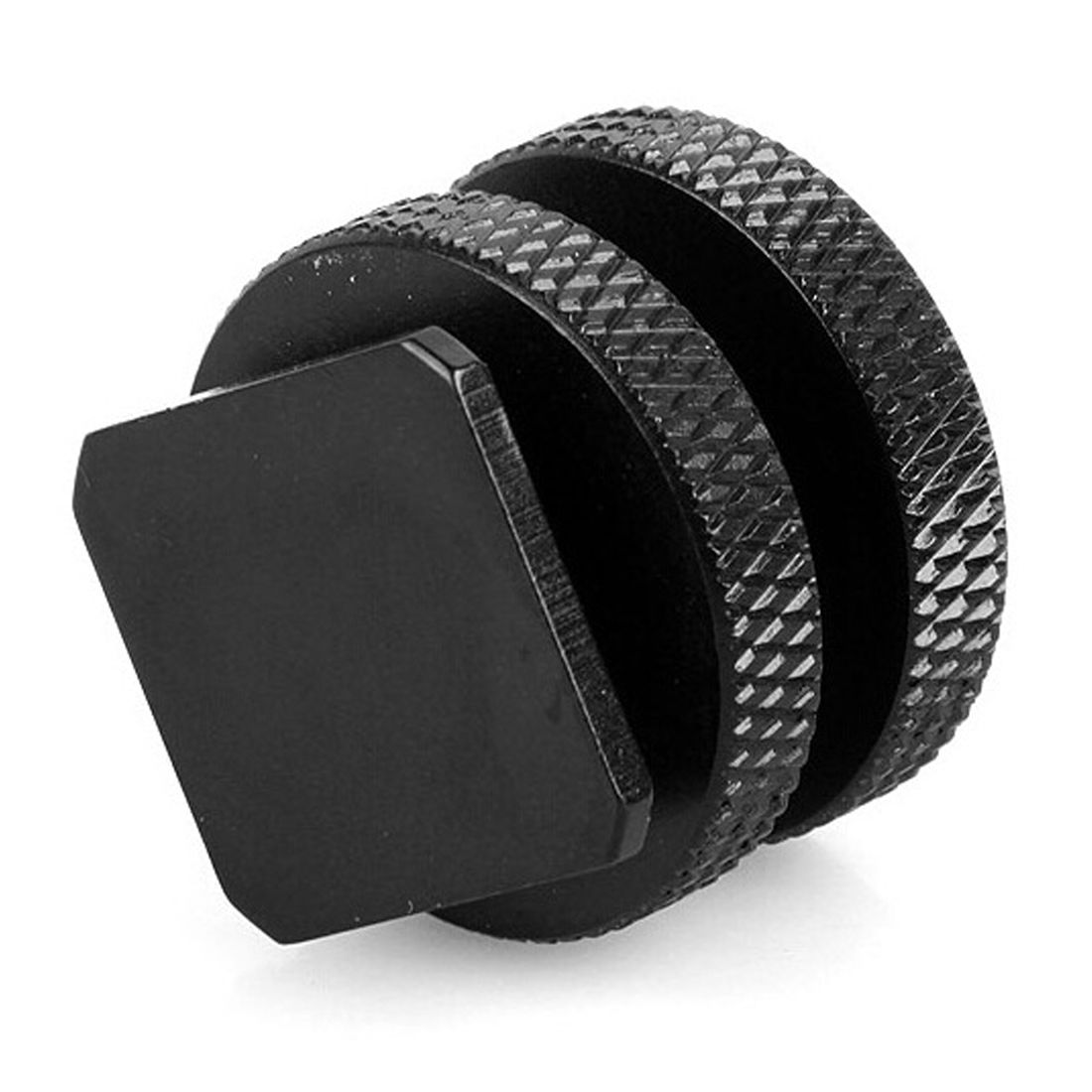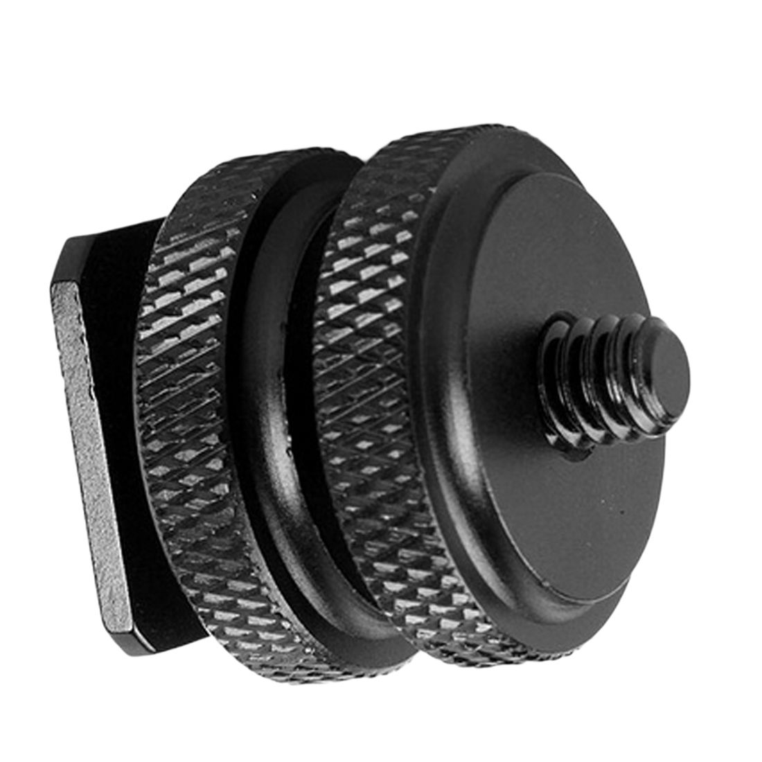 Adaptador de conversión de zapata (hotshoe) a 1/4″, con doble anillo de seguridad. Fabricado en metal.