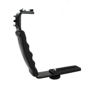 Su acople inferior de 1/4″ estándar permite montarlo sobre trípodes, y sus 3 zapatas frías en su parte superior permiten instalarle accesorios tipo micrófonos, luces leds, monitores, etc.