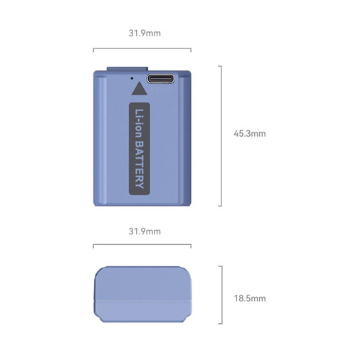 La batería USB-C NP-FW50 azul de SmallRig permite alimentar cualquier videocámara o cámara compatible con este tipo de batería, como numerosos modelos de Sony Alpha y RX. Con una capacidad de 1030 mAh (7,4 Wh) y una salida estable de 7,2 V, esta batería garantiza una autonomía prolongada para sesiones de grabación o fotografía. Su diseño incluye un puerto USB-C de 5 V, que permite cargarla completamente en menos de 2,5 horas mediante adaptadores USB estándar, regletas, cargadores de coche o baterías externas.