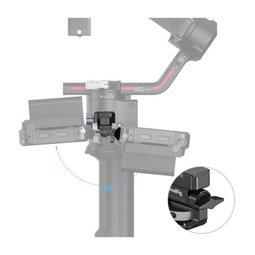 Este soporte para monitor SmallRig se fija al riel NATO en el lateral de tu estabilizador DJI RS 2, RSC 2, RS 3, RS 3 Pro, RS 3 Mini, RS 4 o RS 4 Pro mediante un soporte NATO integrado y ofrece múltiples opciones de montaje para ampliar el estabilizador en ambos lados, en una solución de liberación rápida. Puede girar 165° para garantizar la posición correcta de tu monitor.