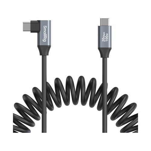 Cable de datos USB-C SmallRig en espiral, de ángulo recto a recto (13,8″)