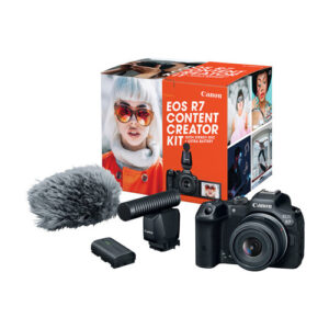 Cámara Mirrorless Canon R7 Content Creator Kit. Lente 18-45mm, micrófono, batería extra