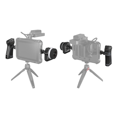 Monte su sistema de control de enfoque inalámbrico en el equipo de su cámara utilizando este kit de controlador de enfoque de seguimiento inalámbrico de SmallRig. El kit incluye un módulo controlador de enfoque, una empuñadura inalámbrica, un adaptador de empuñadura y un cable USB-C. La empuñadura le permite controlar el inicio/detención de su cámara usando un cable opcional y se monta en su equipo para configuraciones de mano derecha o izquierda usando el adaptador de empuñadura incluido.