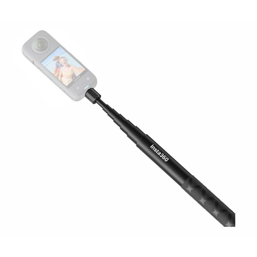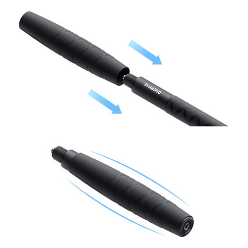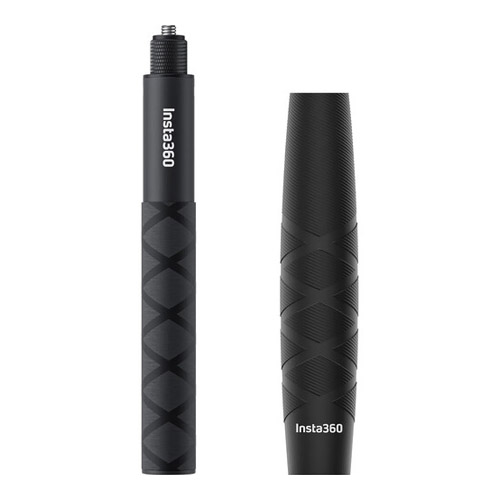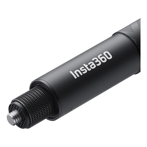 El palo es invisible cuando se usan las cámaras 360 y se puede quitar de la toma en modo selfie. La parte superior del palo tiene un tornillo de 1/4″-20 para montar tu cámara o accesorio, y la parte inferior del palo tiene una rosca de 1/4″-20 para montarlo en un soporte o agregar un accesorio como una correa opcional que tiene un tornillo de 1/4″-20.