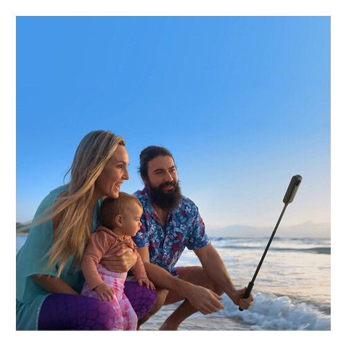 Este palo duradero y liviano pesa solo 120g y se extiende desde una longitud de bolsillo de 20cm hasta una longitud extendida de 85cm para selfies, tomas de acción y ángulos extremos. El palo tiene un mango de agarre suave que brinda mayor comodidad y es extraíble para aligerar la carga del palo.