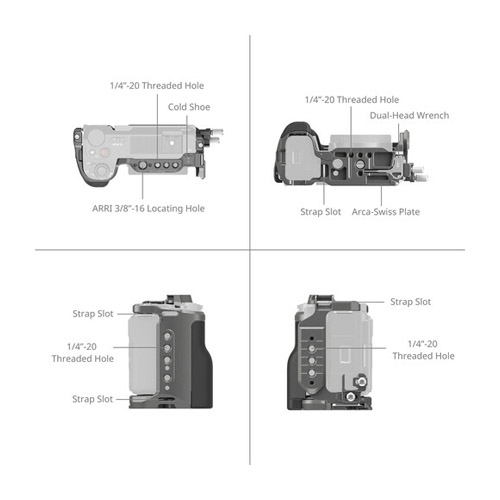 Proteja su cámara mirroless Sony ZV-E10 II y agregue accesorios con este kit de jaula de liberación rápida HawkLock de SmallRig. Esta jaula de aluminio presenta un diseño de bloqueo de tres puntos anti-torsión y una variedad de opciones de montaje, y mantiene el acceso a los controles de la cámara y la zapata. También incluye una abrazadera de cable HDMI para evitar que los cables se desprendan.