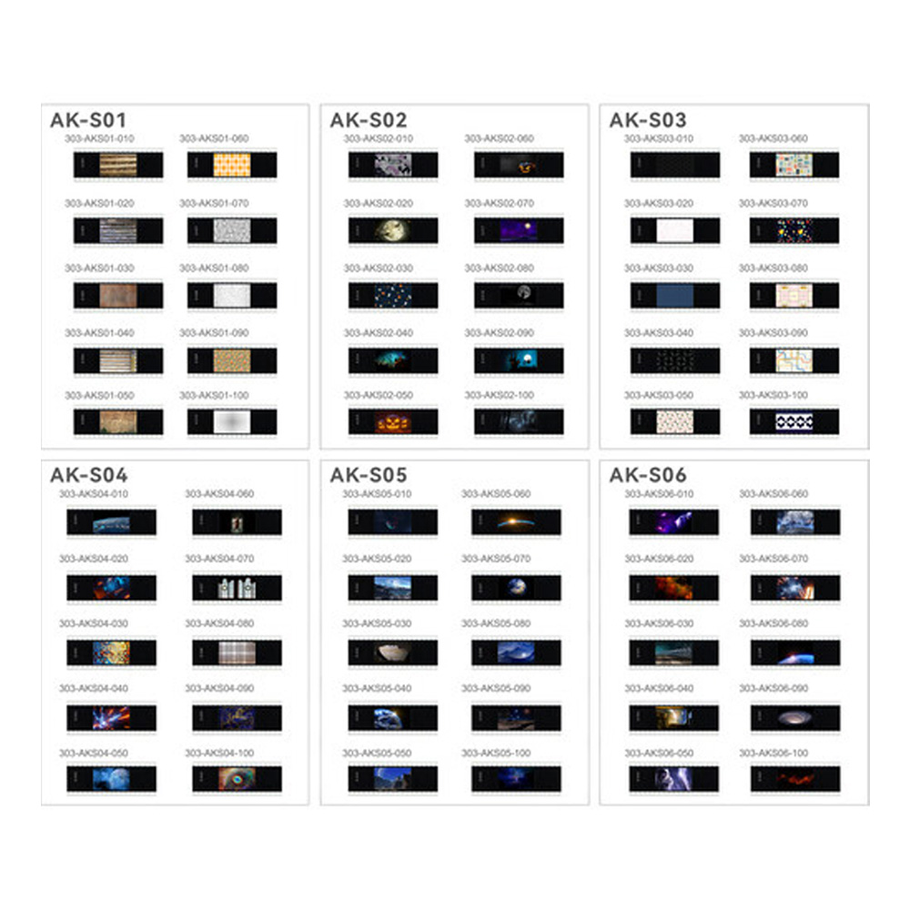 Este kit de diapositivas Godox está diseñado para el accesorio de proyección AK-R21 y contiene 6 hojas de diapositivas únicas, cada una de las cuales contiene 10 diapositivas únicas. Con este kit podrás crear 60 efectos de iluminación diferentes con las diapositivas incluidas.