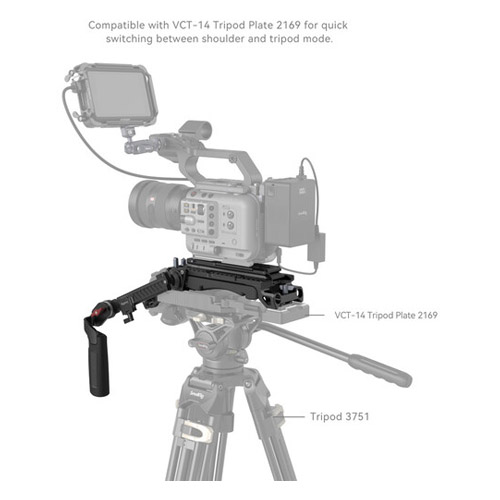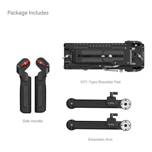 El kit SmallRig Shoulder Rig Pro le proporciona todas las herramientas que necesita para realizar grabaciones cómodas usando una montura de hombro con su cámara de cine Sony, Blackmagic, Canon o Panasonic. El kit incluye una hombrera compatible con placa de trípode VCT-14, dos brazos de extensión ajustables y dos asas de goma con rosetas ARRI. Una vez ensamblado, el equipo ofrece compatibilidad con varillas LWS de 15 mm y sistemas de liberación rápida para una transición eficiente entre disparos portátiles y montados en trípode.