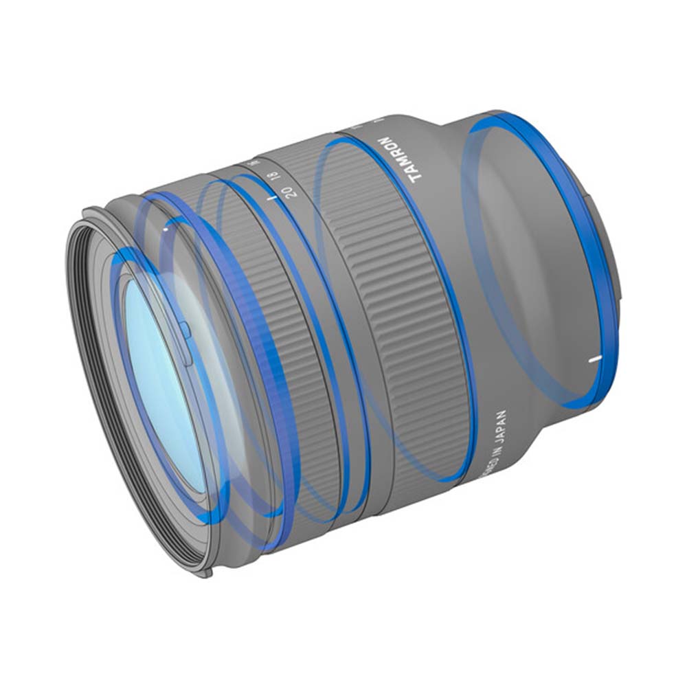 Es un objetivo zoom ultra gran angular de apertura rápida para cámaras sin espejo Sony E-mount APS-C. Cuenta con una apertura máxima rápida y constante de f/2.8 y tiene un diseño compacto y liviano. Este objetivo ultra gran angular es especialmente adecuado para fotografía de paisajes, astrofotografía y arquitectura. Su brillante apertura f/2.8 complementa este rango y permite un mayor control sobre la profundidad de campo junto con un rendimiento mejorado con poca luz. El diseño óptico incorpora un elemento XLD, dos elementos LD y dos elementos asféricos moldeados con vidrio para producir una imagen altamente corregida con aberraciones cromáticas y franjas de color reducidas para mejorar la claridad y la precisión del color. Los elementos individuales también cuentan con el revestimiento BBAR de Tamron, que suprime los destellos y las imágenes fantasma para lograr un mayor contraste cuando se trabaja en condiciones de iluminación adversas y a contraluz. Un motor paso a paso RXD sensible permite un rendimiento de enfoque automático rápido y casi silencioso para adaptarse a imágenes fijas y videos.