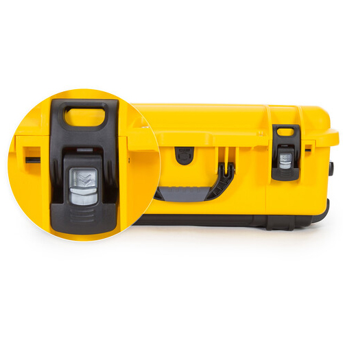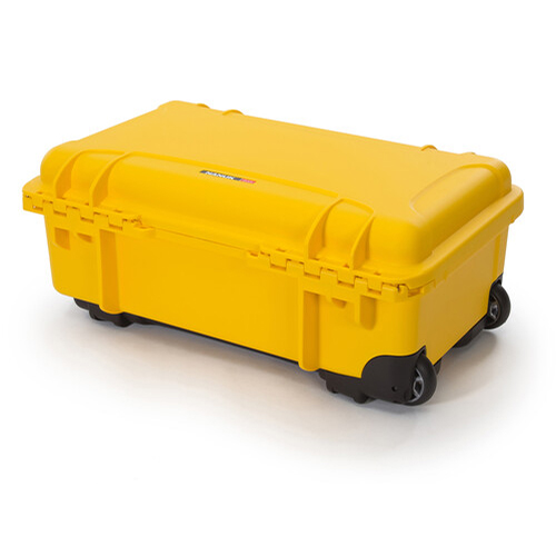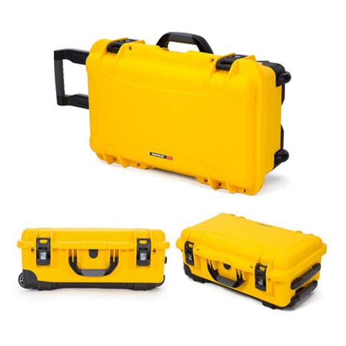 Maleta rígida Amarilla con ruedas y agarradera extensible Nanuk 935 con divisores acolchados y organizador superior, de 28.5 litros de capacidad. Medias perfectas como Carry-On en la mayoría de las aerolíneas.