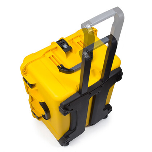 La maleta tiene una válvula de presión automática que protege contra el vacío causado por cambios de altitud y una junta o sello impermeable y de ajuste personalizado hecho de caucho EPDM de alta calidad que resiste la deformación. También cuenta con bisagras de acero inoxidable y se puede transportar fácilmente con su asa retráctil y ruedas de alta resistencia.