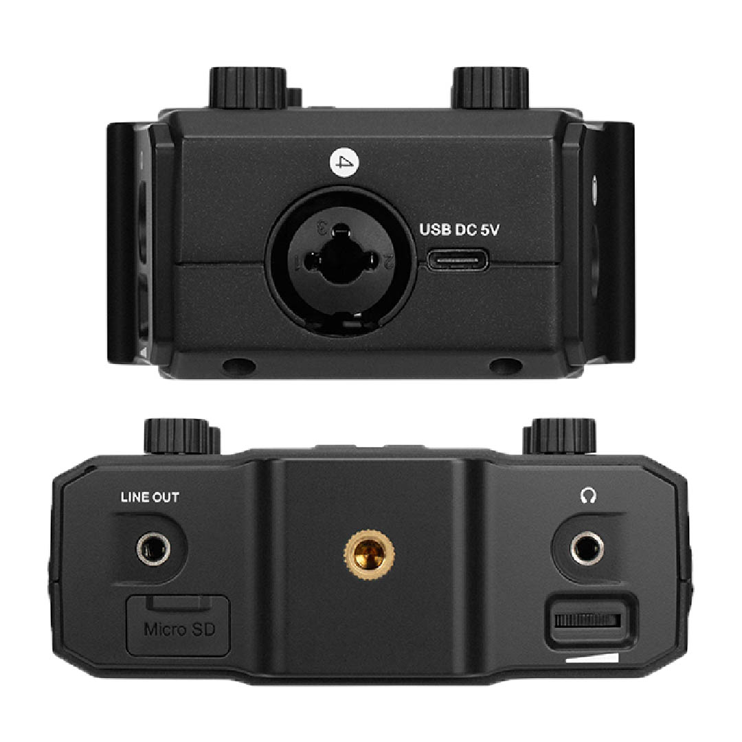 El SmartMixer 4C está equipado con un conector para auriculares dedicado, control de volumen y un interruptor REC/PLAY para monitoreo de reproducción y en tiempo real. Con un interruptor mono/estéreo, el SmartMixer 4C es conveniente para la edición de contenido. Con el interruptor CAM/PHONE, el SmartMixer 4C es compatible con la cámara y el teléfono inteligente. Hay una rosca de 1/4′ en la parte inferior del SmartMixer 4C para conectarlo a un trípode u otros accesorios.