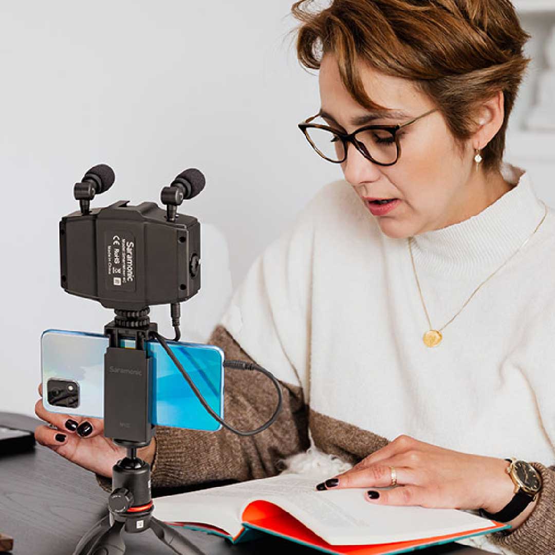 - Micrófonos TRS, trípode, abrazadera para teléfono inteligente, zapata fría, cables de audio, caja de herramientas incluida
