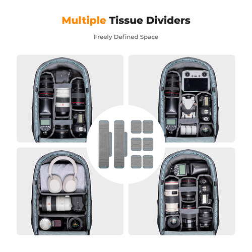 Mantén tu equipo fotográfico y artículos personales seguros durante el transporte con la mochila para cámara Beta Series de 30 litros en color negro de K&F Concept. Esta mochila tiene capacidad para dos cámaras DSLR, varios lentes y accesorios. Puedes organizar el interior a tu gusto utilizando los divisores ajustables. Fabricada con nailon 900D resistente al agua, protege tu equipo delicado incluso en condiciones de humedad.