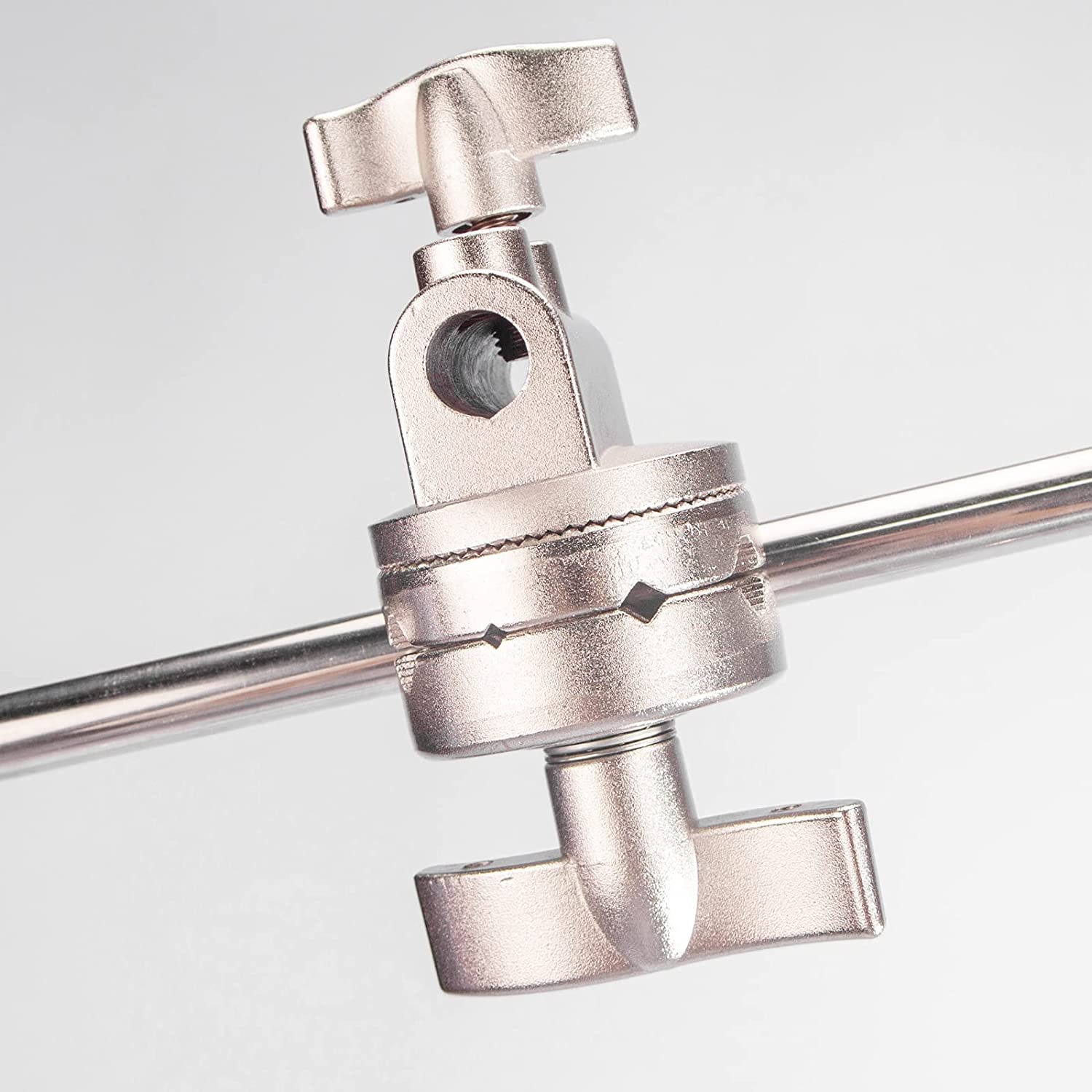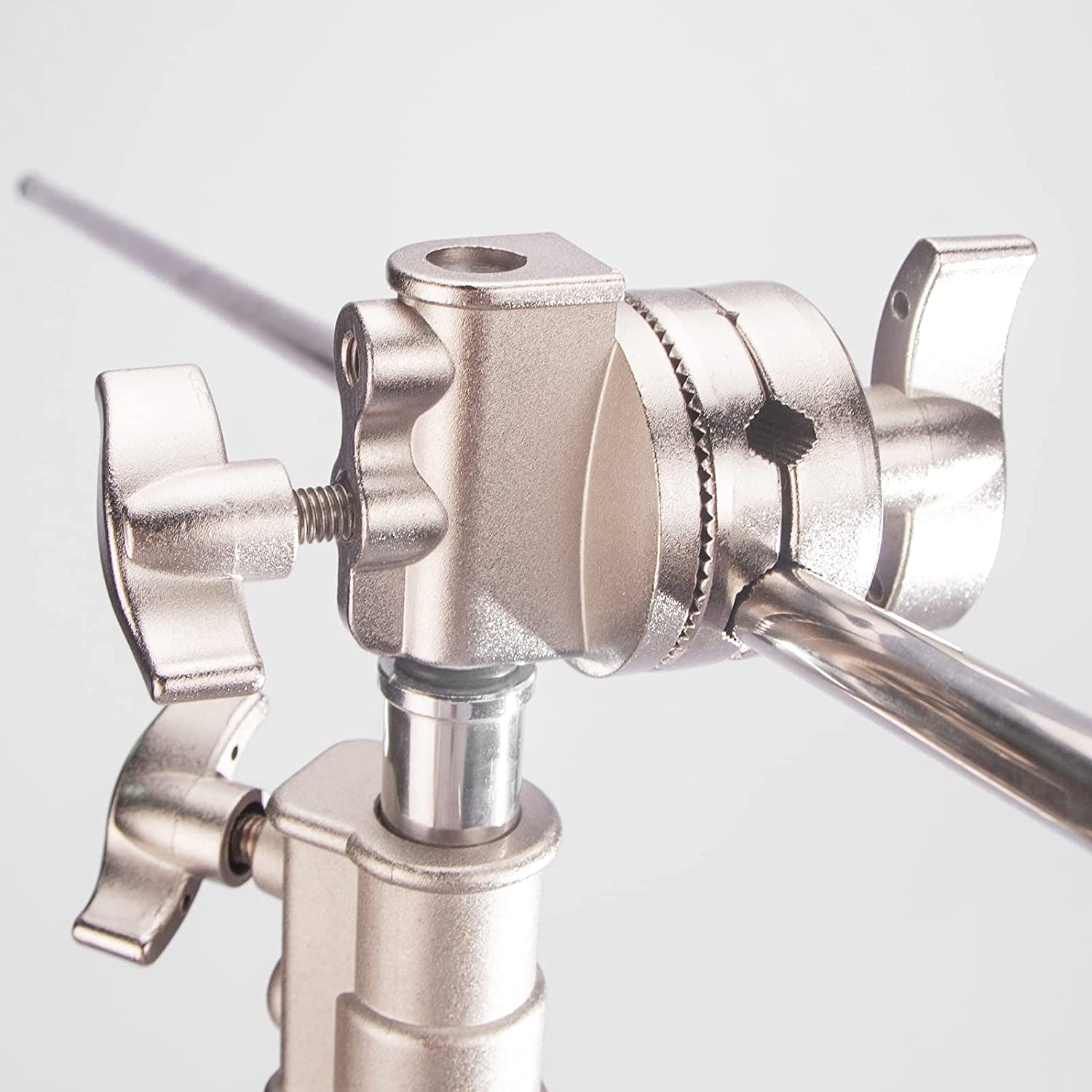 - El cabezal de agarre es una pieza de equipo de estudio muy versátil, conecta un brazo de extensión a un soporte de luz; Sostiene el brazo de la pluma en su lugar.