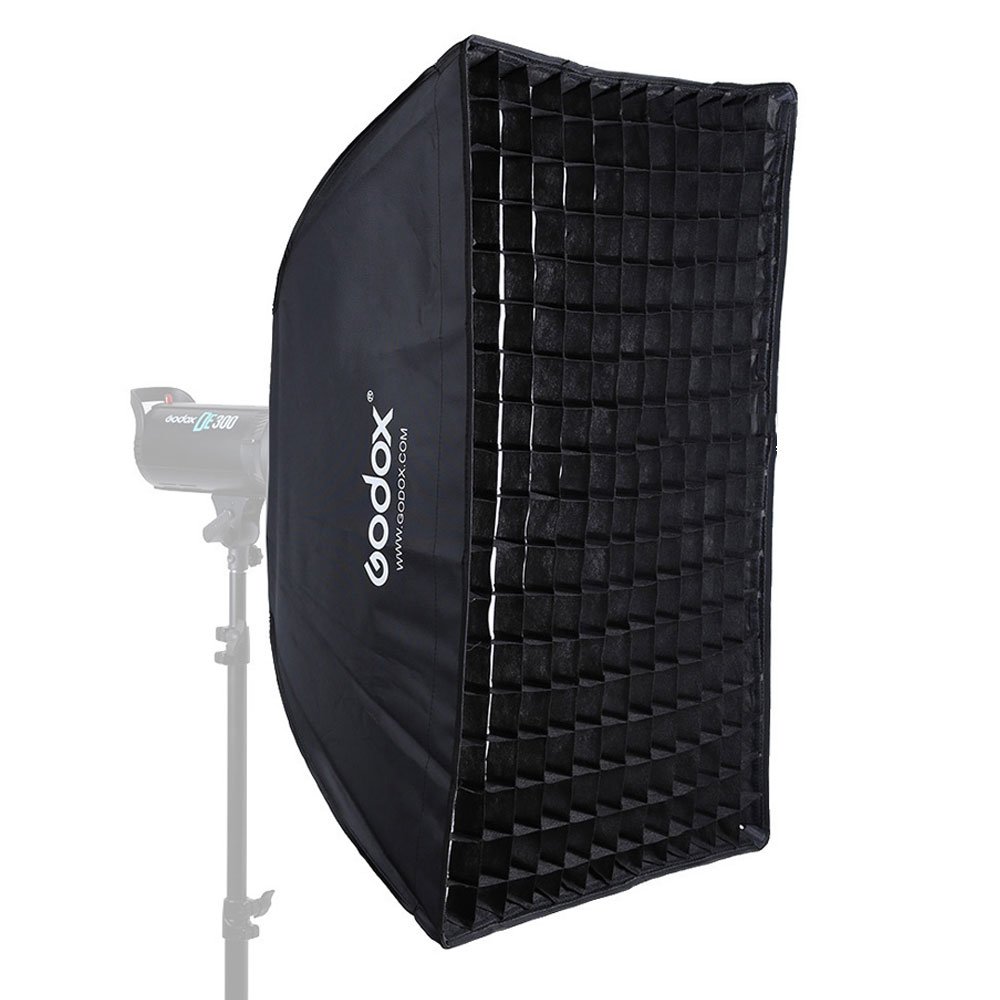 Softbox Godox de 60 x 90 cm con acople Bowens, y panal de abeja (grid), y ensamble rápido tipo sombrilla.