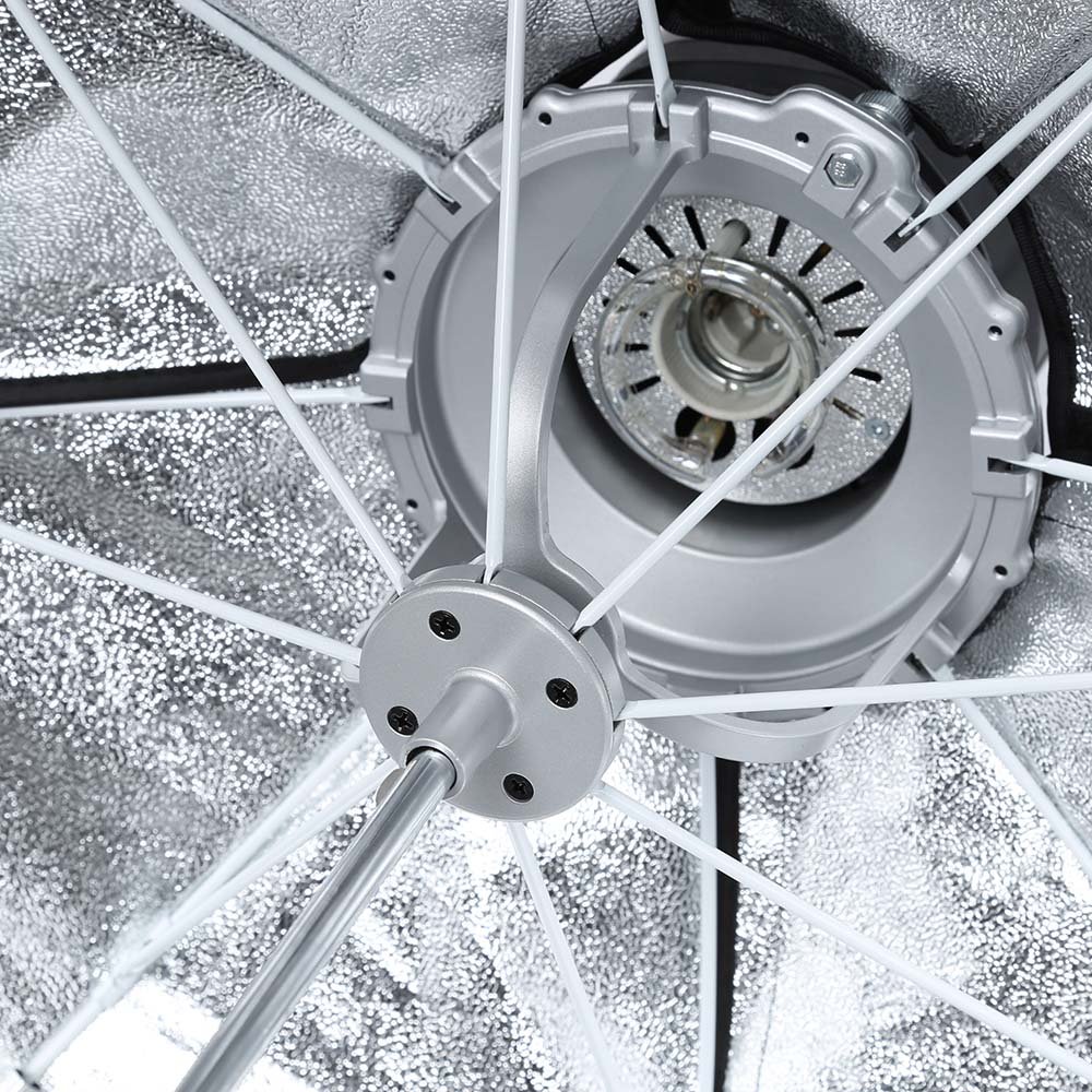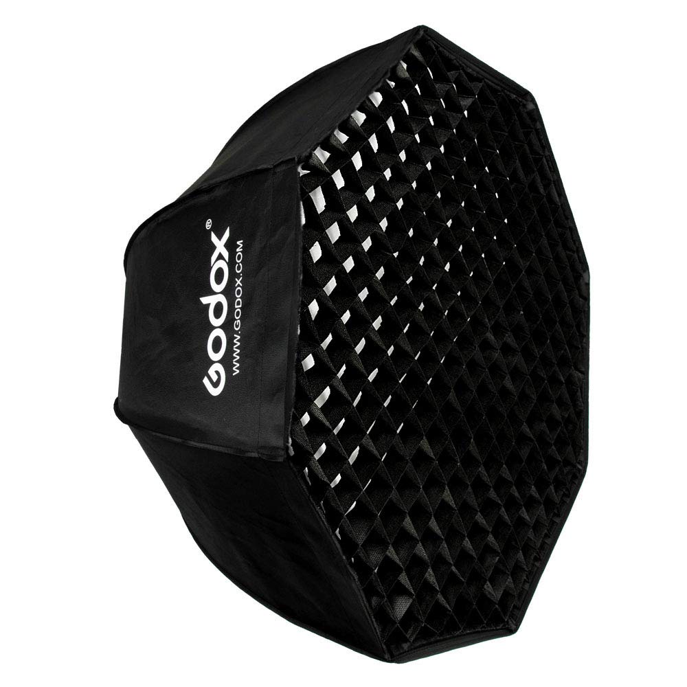 Softbox Octogonal Godox de 120cm con acople Bowens, panal de abeja (grid), y ensamble rápido tipo sombrilla.