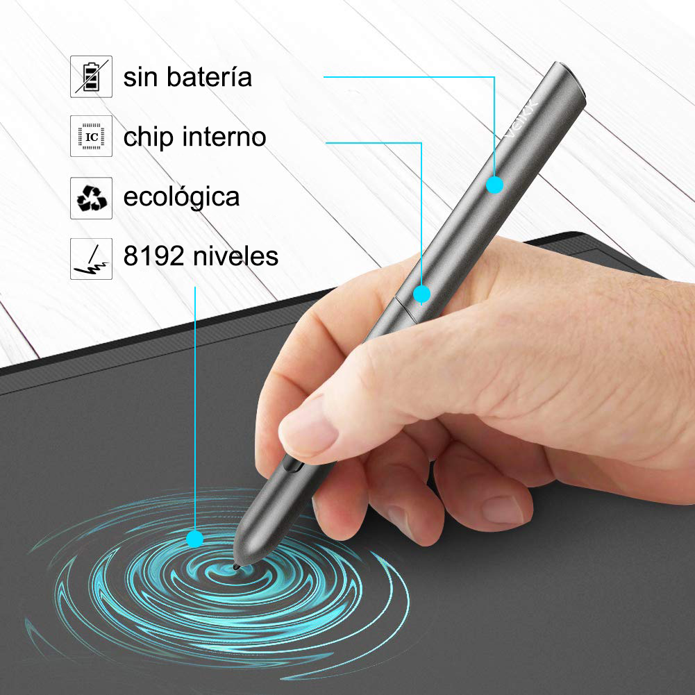 - Lápiz con 8192 niveles de sensibilidad de presión.