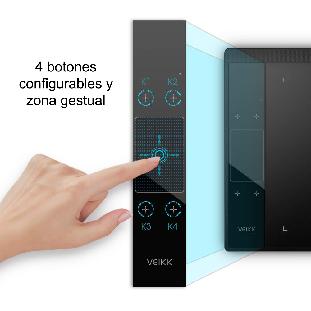 Sus 4 botones táctiles, y zona gestual configurables, lo hacen muy conveniente para acelerar el trabajo.