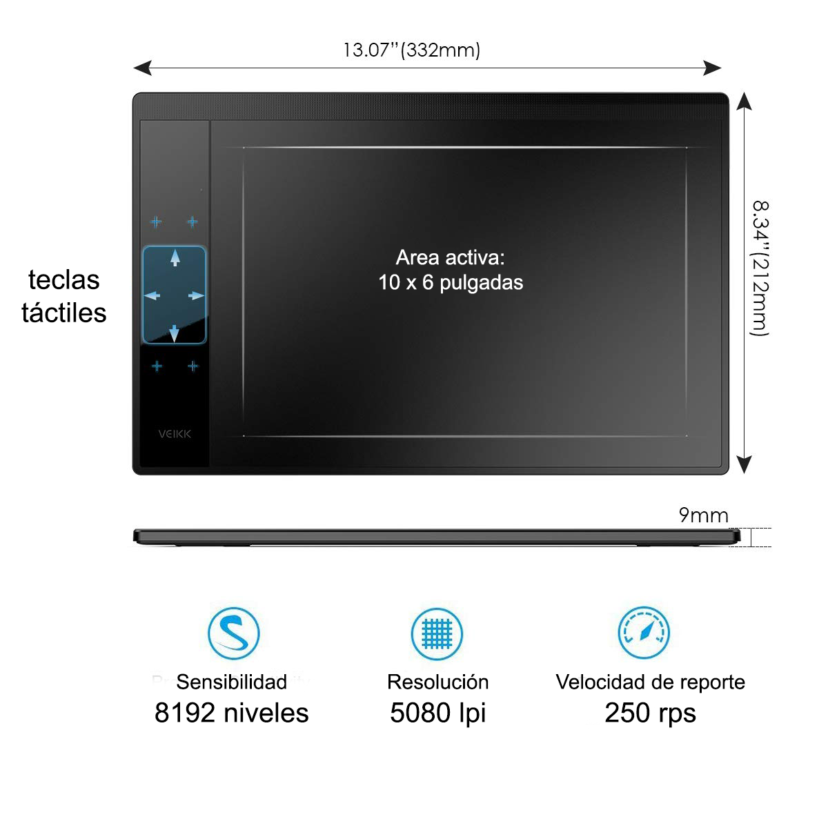 - Dimensiones: 332 x 212 x 9 mm.
